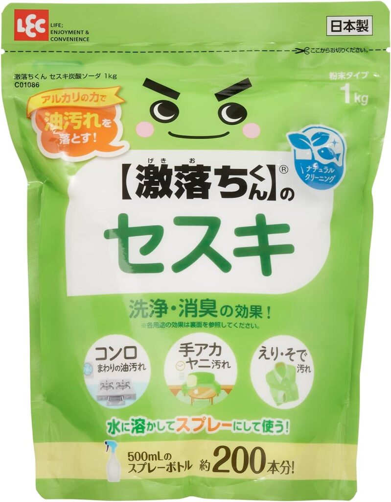 ①重曹・セスキ炭酸ソーダなどアルカリ性洗剤を使う