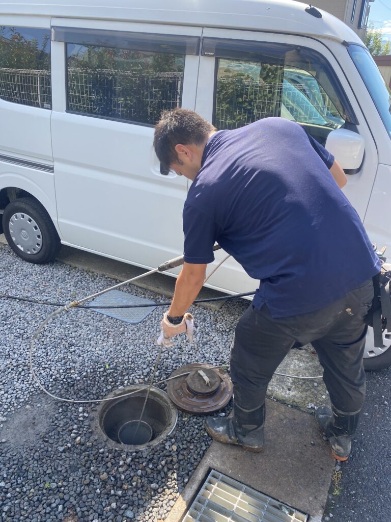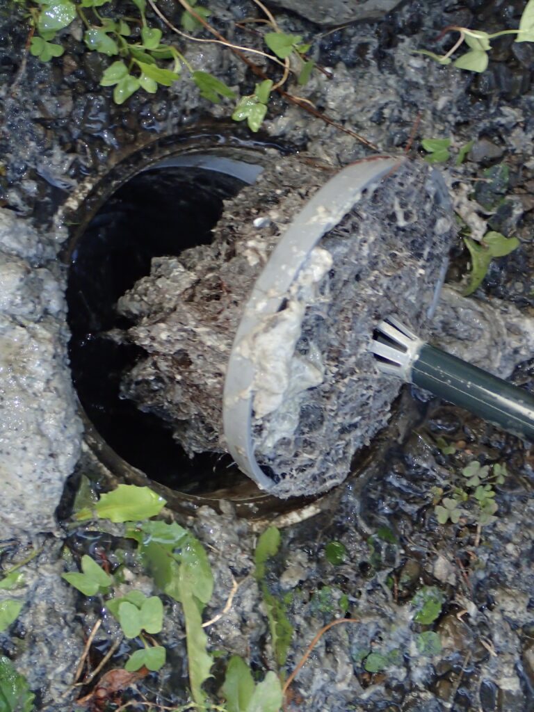こちらも高圧洗浄機とパイプクリーンノズルを使用して、排水管・排水桝の清掃を行いました。