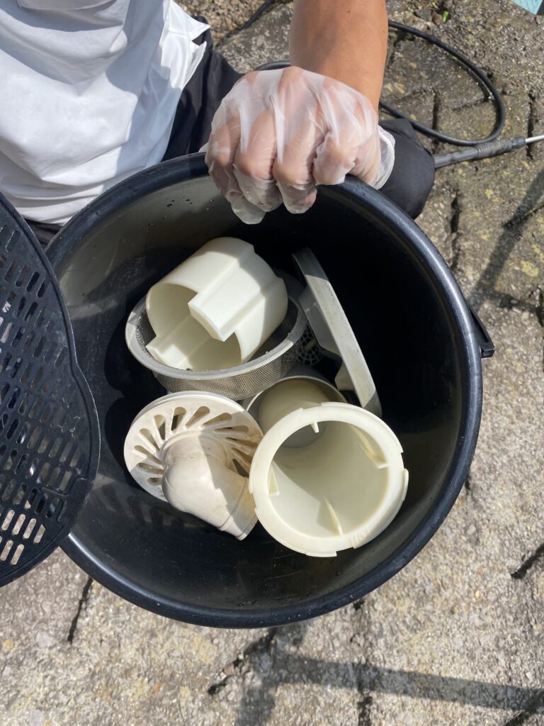 また排水口の各部品にヘドロ化した汚れが付いており、こちらも臭いの原因になっていたようです。