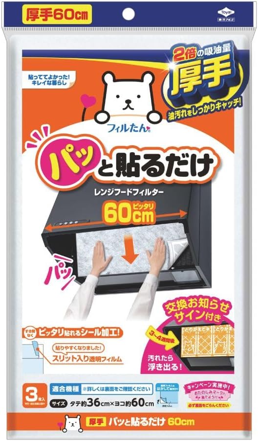 ▽換気扇用フィルター|東洋アルミ レンジフードフィルター 厚手 約36cm×60cm 3枚入