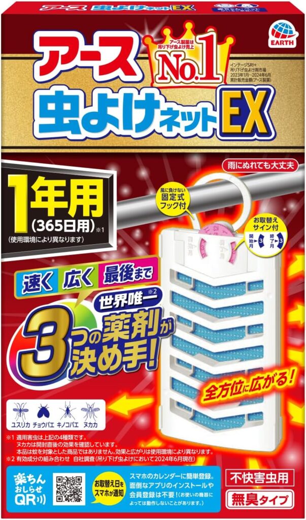 ▽おすすめ虫よけグッズ|アース虫よけネット EX 吊り下げ 虫除け 1年用
