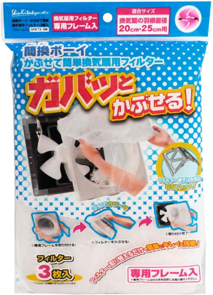 ▽おすすめ換気扇用フィルター|新北九州工業 簡換ボーイ かぶせて簡単換気扇用フィルター3枚入+フレーム付